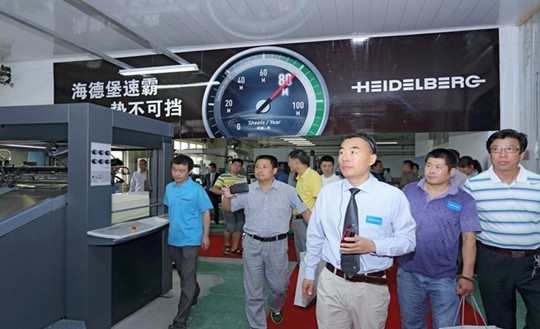 圖注:近(jin)100位印刷才(cái)俊現場見(jiàn)證海德堡(bao)增強型速(su)霸CD 102的卓越(yuè)生‼️産力